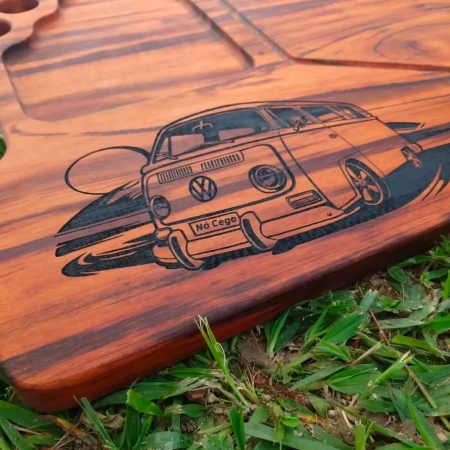 Nosso portfólio inclui tábuas de churrasco, petisqueiras, acessórios personalizados, copos, chaveiros, squeezes, canetas, kits corporativos, brindes personalizados e até protótipos em 3D. Cada peça é feita com cuidado e atenção aos detalhes, seja para presentear alguém especial, valorizar sua marca ou equipar seu negócio com estilo e funcionalidade.
